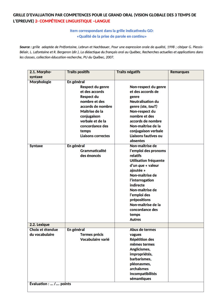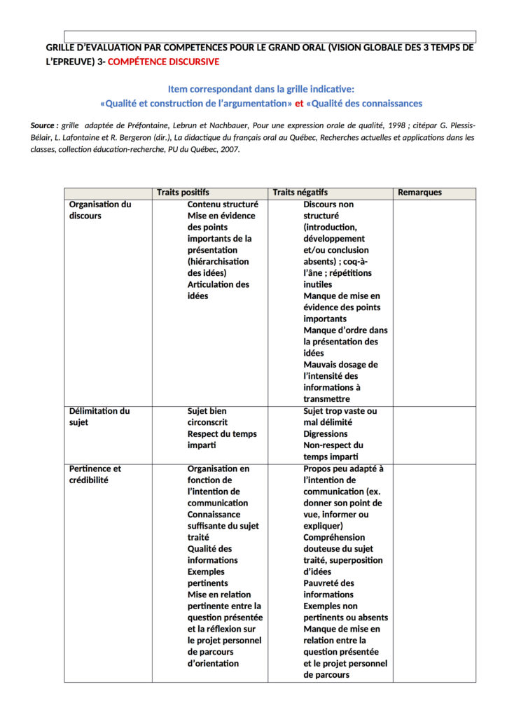 Sur le site du Ministère : grille d’évaluation indicative de l’épreuve orale terminale