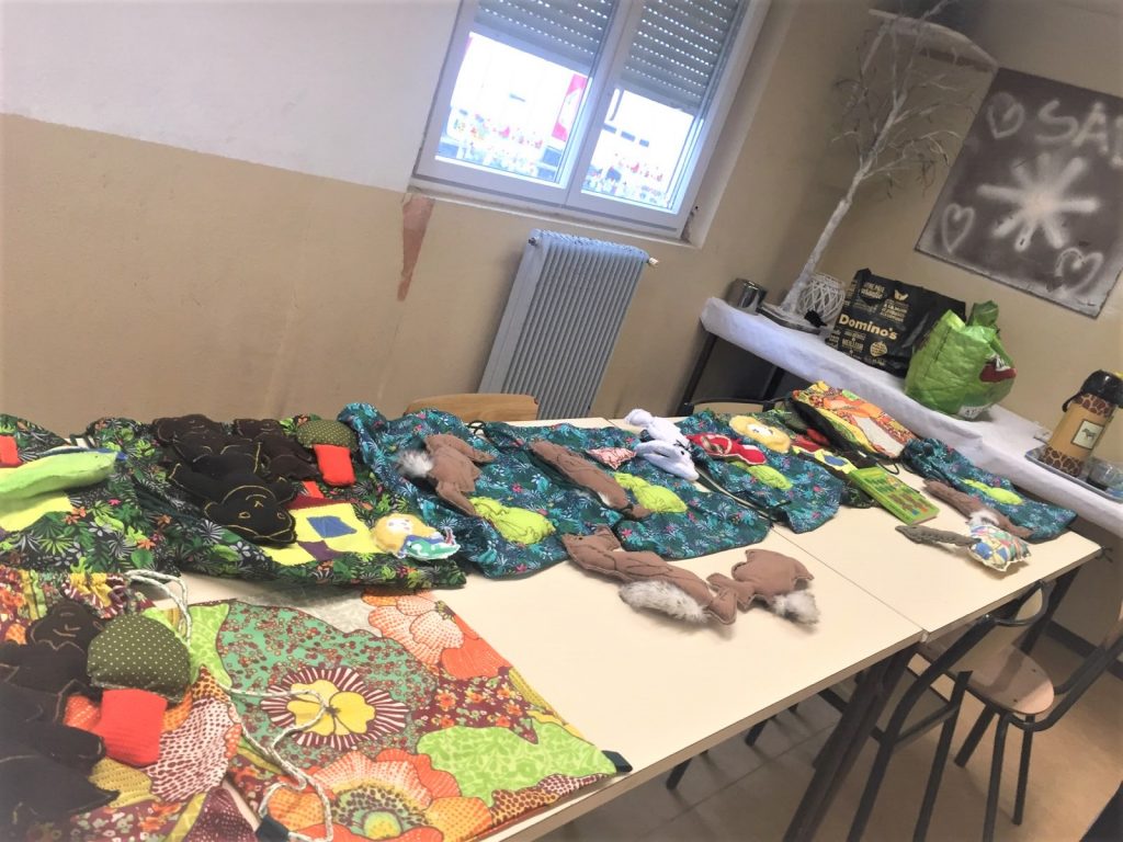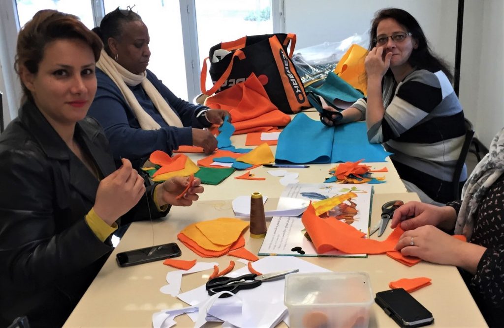 Depuis plusieurs années, l’association le Bas Vert propose des ateliers couture, en collaboration avec l’école Victor Duruy sur le projet « sacs à histoires ». À la réunion parents et enseignants de l’école, on s’est mis d’accord sur le choix des livres, et tout de suite l’association a pris en charge la confection des personnages des livres. Bien sûr, les tissus ont été fournis par l’école, les CD audio ont été réalisés par une collaboration de mamans d’ élèves de l’école, bien choisies pour leur langues différentes. Un technicien son, Imane, Virginie, sa fille, Élisabeth et d’autres adhérentes ont ainsi animé l’atelier avec toutes les mamans des élèves.