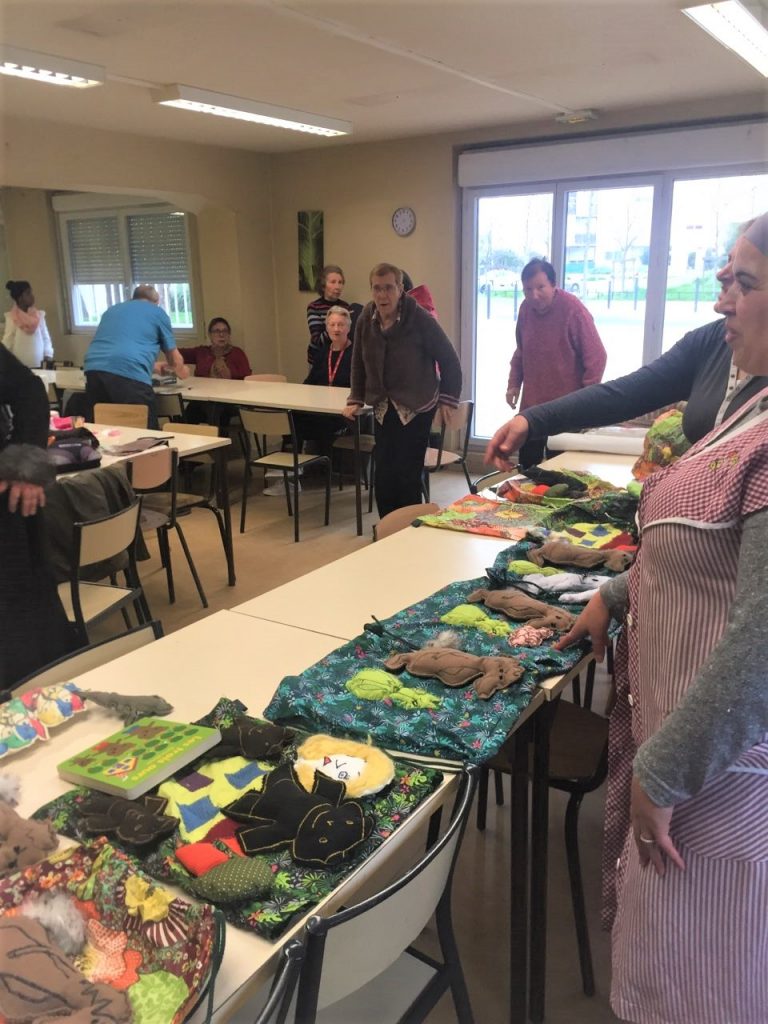 Au fil des années, chacune des participantes s’est perfectionnée et a acquis de nouvelles compétences. Autour des tables, on découvre des vestes, blouses, robes et tout type de réalisations, y compris des robes traditionnelles (antillaises, maghrébines, africaines…), explique Apolline : « Je ne savais même pas me servir d’une machine à coudre. On a appris comment positionner un patron et des notions comme le sens du tissu, le droit fil, etc. Quand on sait tout ça, on peut faire de belles choses. Je suis contente. » Nous avons élaboré un savoir de groupe, des compétences pour récupérer et recycler.