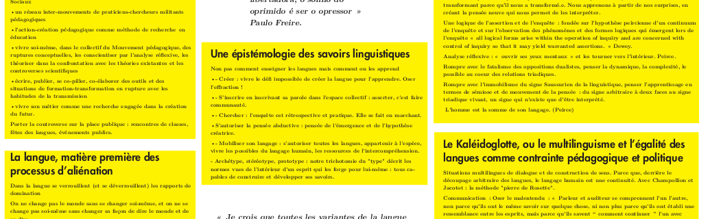 Tous créateurs, tous chercheurs, tous polyglottes, tous capables : le paradigme de l’anthropoglossophilieBillet publié dans Anthropoglossophilie et taggé avec méthodologie paradigme scientifique Recherche Poster scientifique créé pour le Colloque de l’Institut Paulo Freire des 16 et 17 septembre 2021 à ParisTélécharger