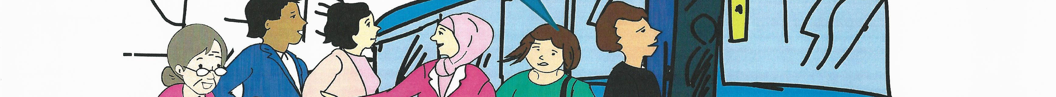 La première situation est une série de dessins à décrire. Elle est régulièrement utilisée au Maroc par Mohamed Bouazzi pour des formations citoyennes qu’il donne à des publics étudiants dans un cadre associatif. Conçu à partir d’un contexte marocain, le dessin a été légèrement modifié pour une utilisation en Europe. Chaque groupe a reçu un ensemble de cinq dessins assortis chacun d’une bulle de dialogue, l’ensemble constituant une petite histoire que nous étions invités à décrire et commenter. Les uns ont tenté de se mettre d’accord sur un ordre à donner à la série des dessins et des répliques qu’ils comportent, les autres , ayant cru devoir respecter l’ordre dans lequel les dessins étaient distribués, ont tenté d’en justifier le déroulement. Chaque personne a ensuite été invitée à écrire l’histoire à sa manière propre.